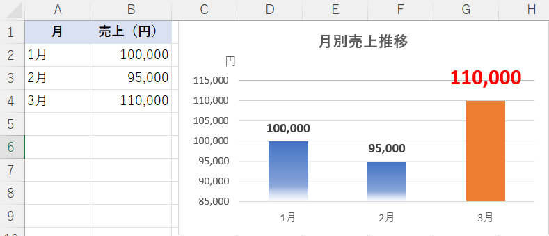 - グラフタイトルを「月別売上推移」に変更