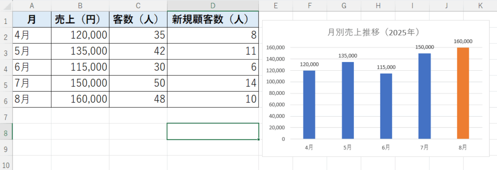 - グラフタイトルを「月別売上の推移(2025年)」に変更