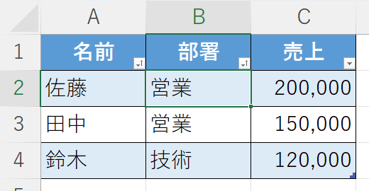 ※【部署】が【あ→ん】の順番になり、同じ場合は【名前】が【あ→ん】の順番になる。