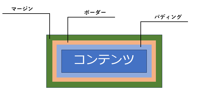 | margin(マージン) | ボックスと外の間隔(外側) | 他の要素との距離 |