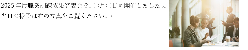 - 「文字列の折り返し:四角」で横に文章が回り込むようにする