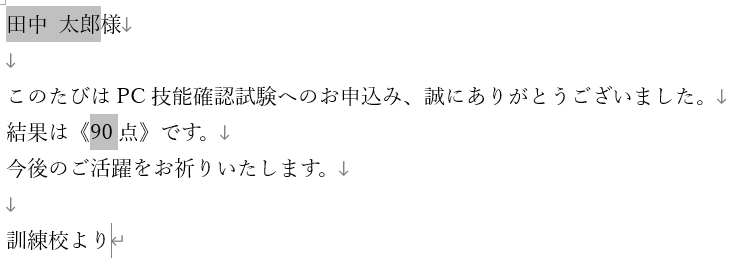 「案内文書」に、「氏名」と「日付」を差し込む形式を作ってみましょう。
