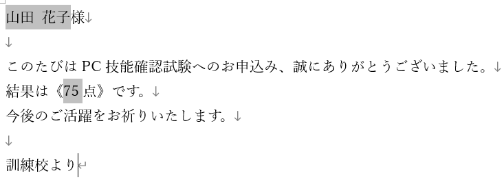 - 「氏名」「修了日」などの差し込みフィールドを挿入